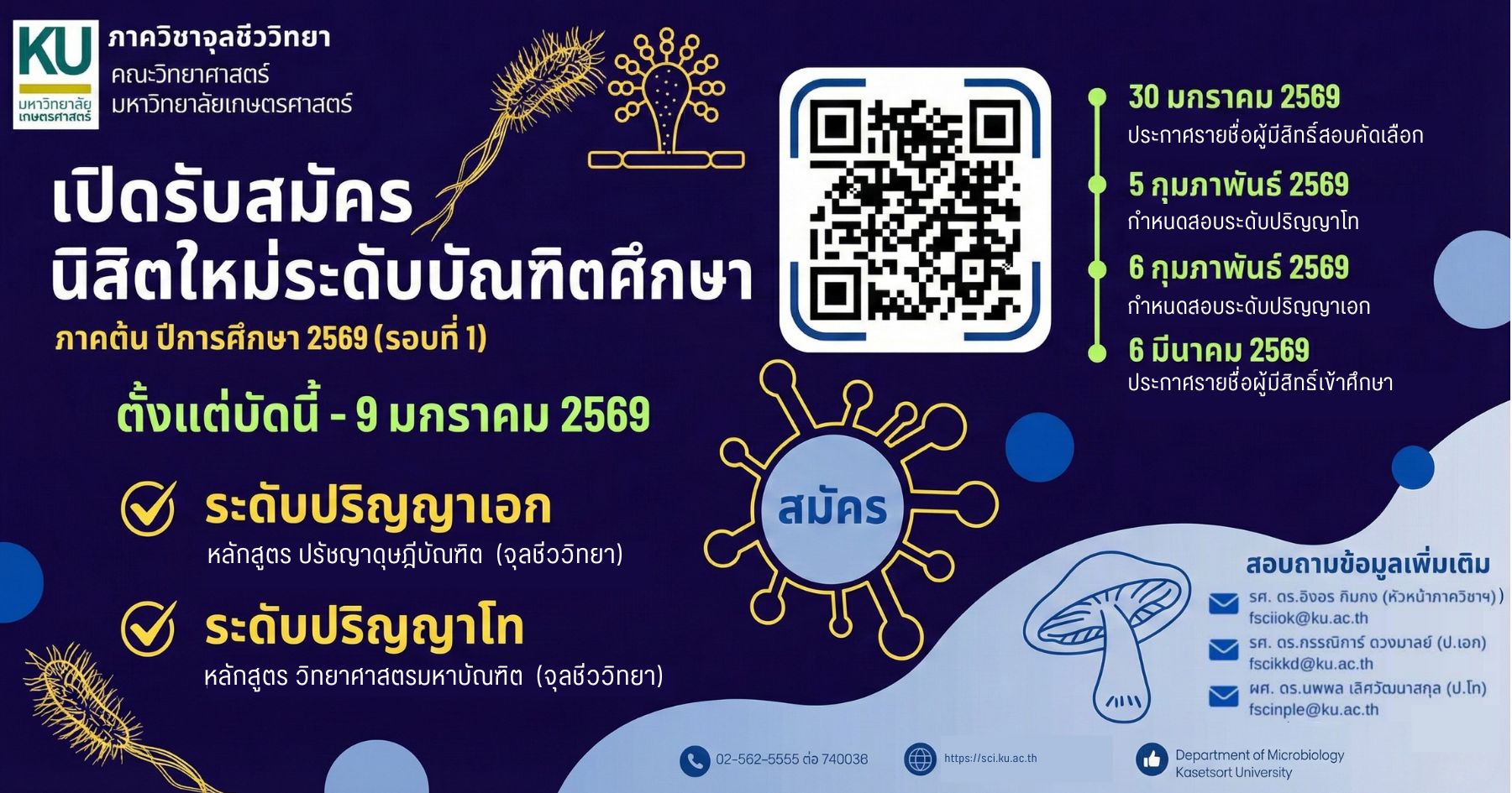 เปิดรับสมัครนิสิตใหม่ระดับบัณฑิตศึกษา ภาคต้น ปีการศึกษา 2569 (รอบที่ 1)